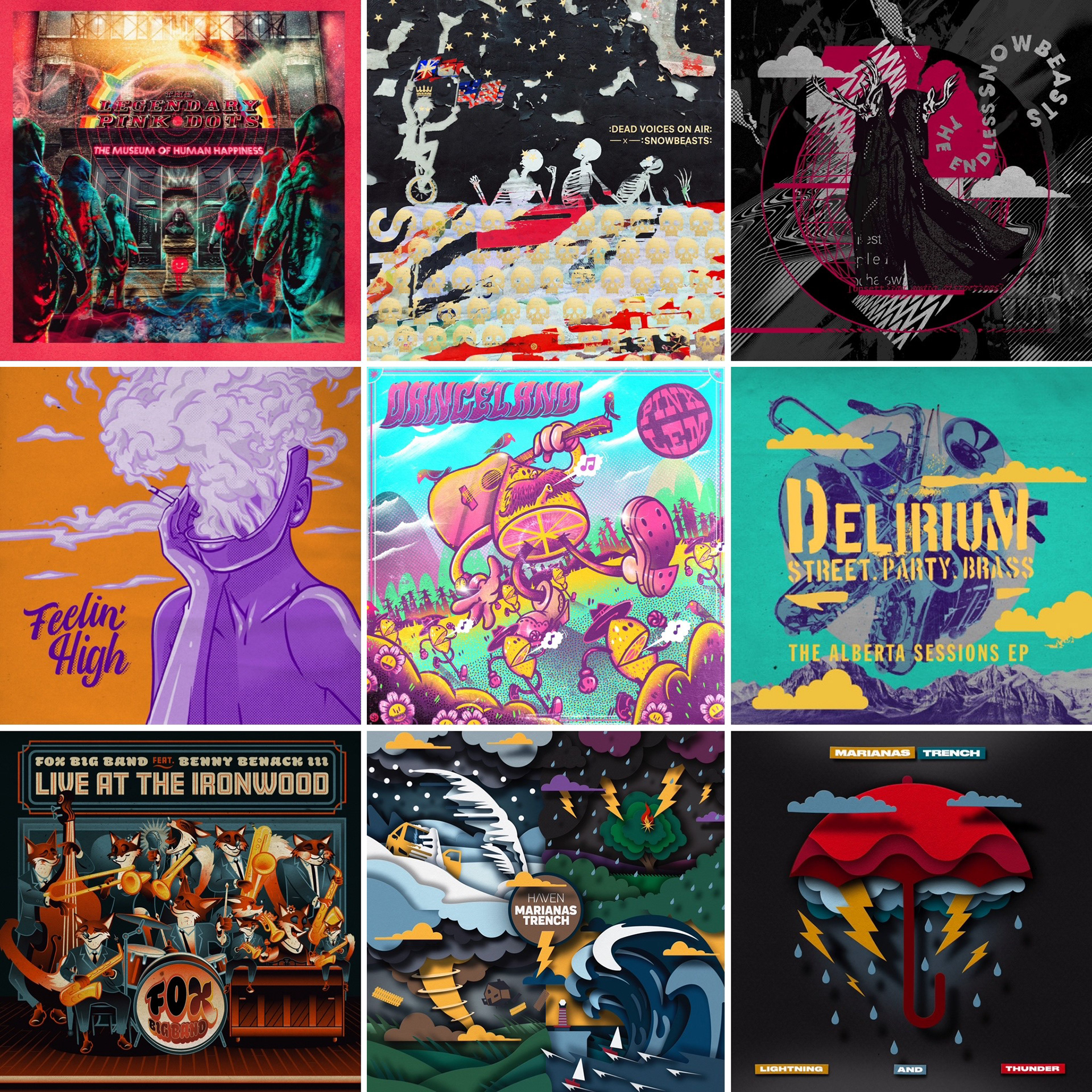 Collage and Illustration based Package Design and Digital Single Artwork. A variety of genres from Country, Gospel, Electronic, Jam Band, Pop, & Jazz.