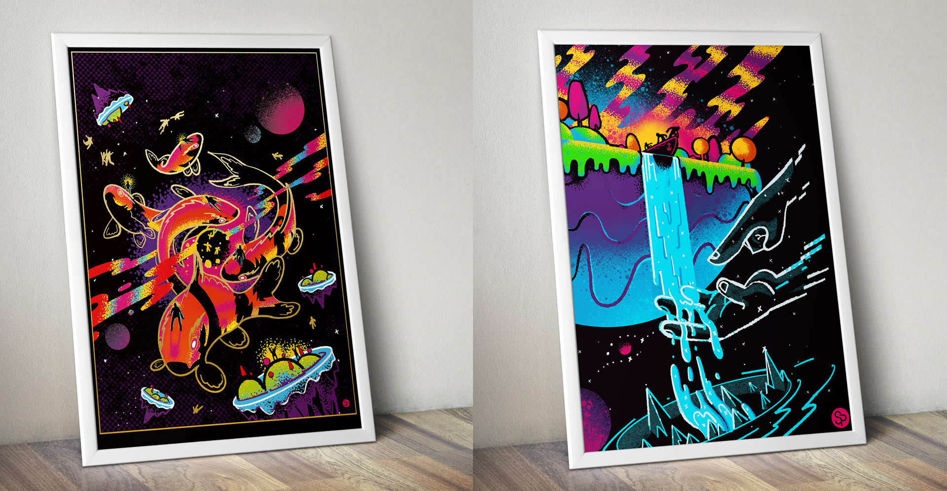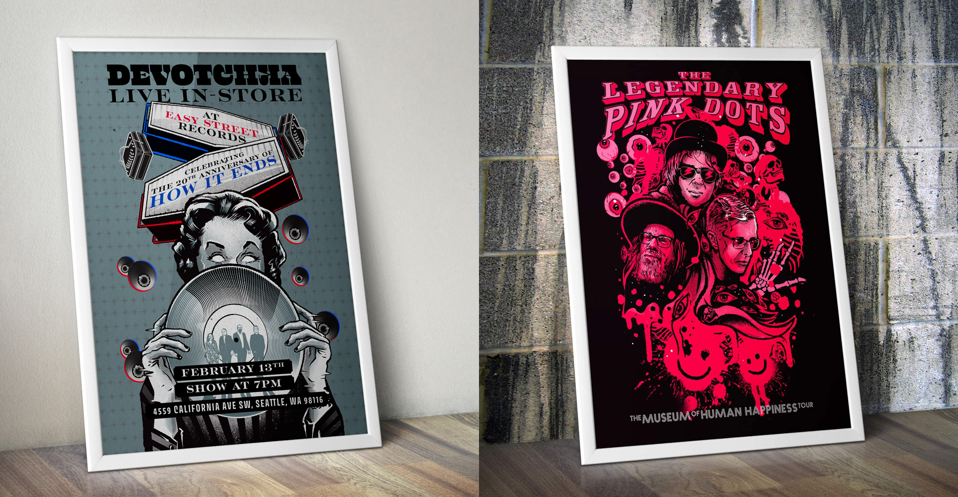 A variety of posters for different clients.